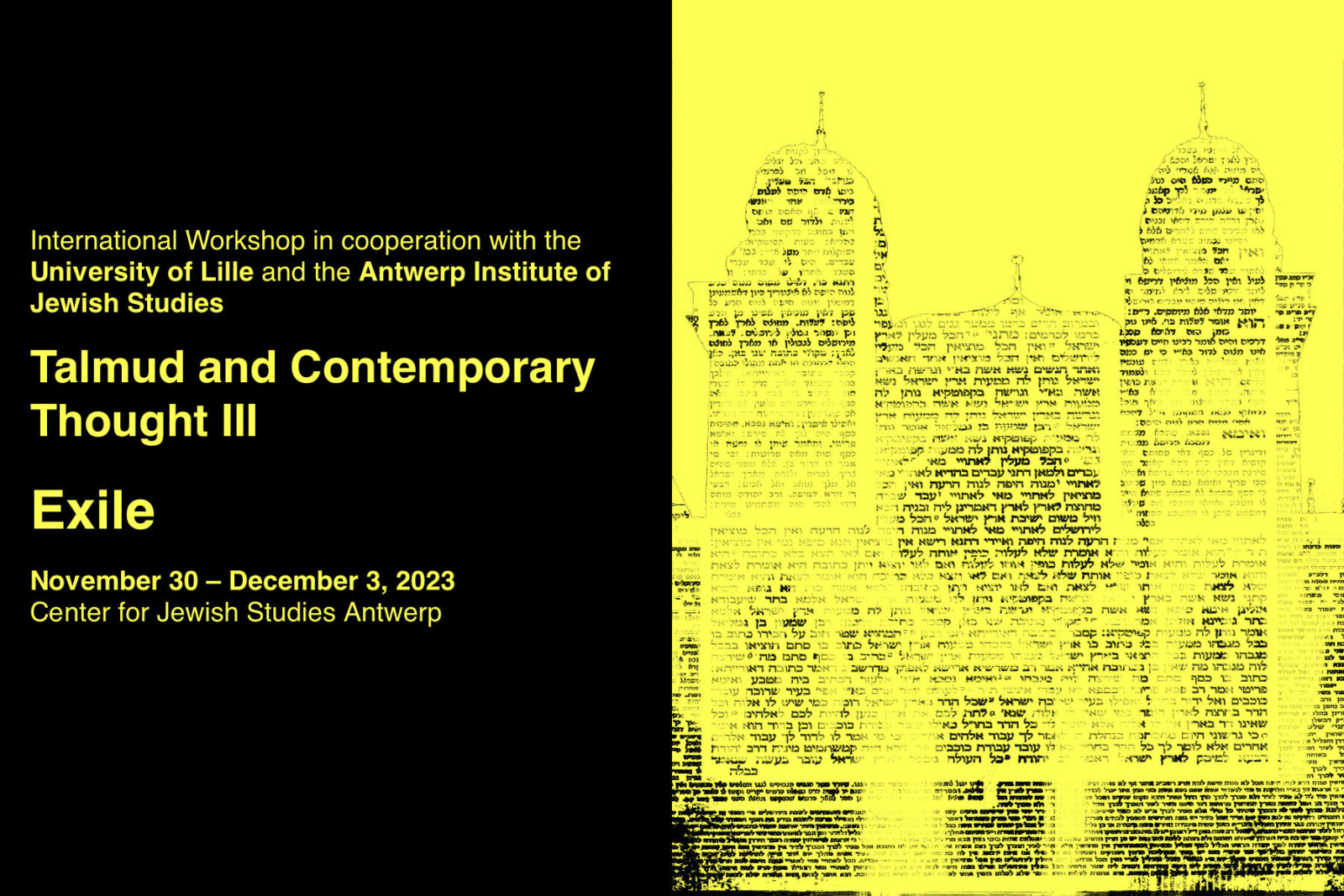 This year’s events will explore various aspects in which Talmudic knowledge may be said to be diasporic, both in relation to its socio-political Sitz im Leben, i.e. diasporic Jewish communities, and in relation to its themes, i.e. life in diasporic conditions, as well as in the very structure of its knowledge, i.e. as text, as discourse, as subjectivity, as institutions.